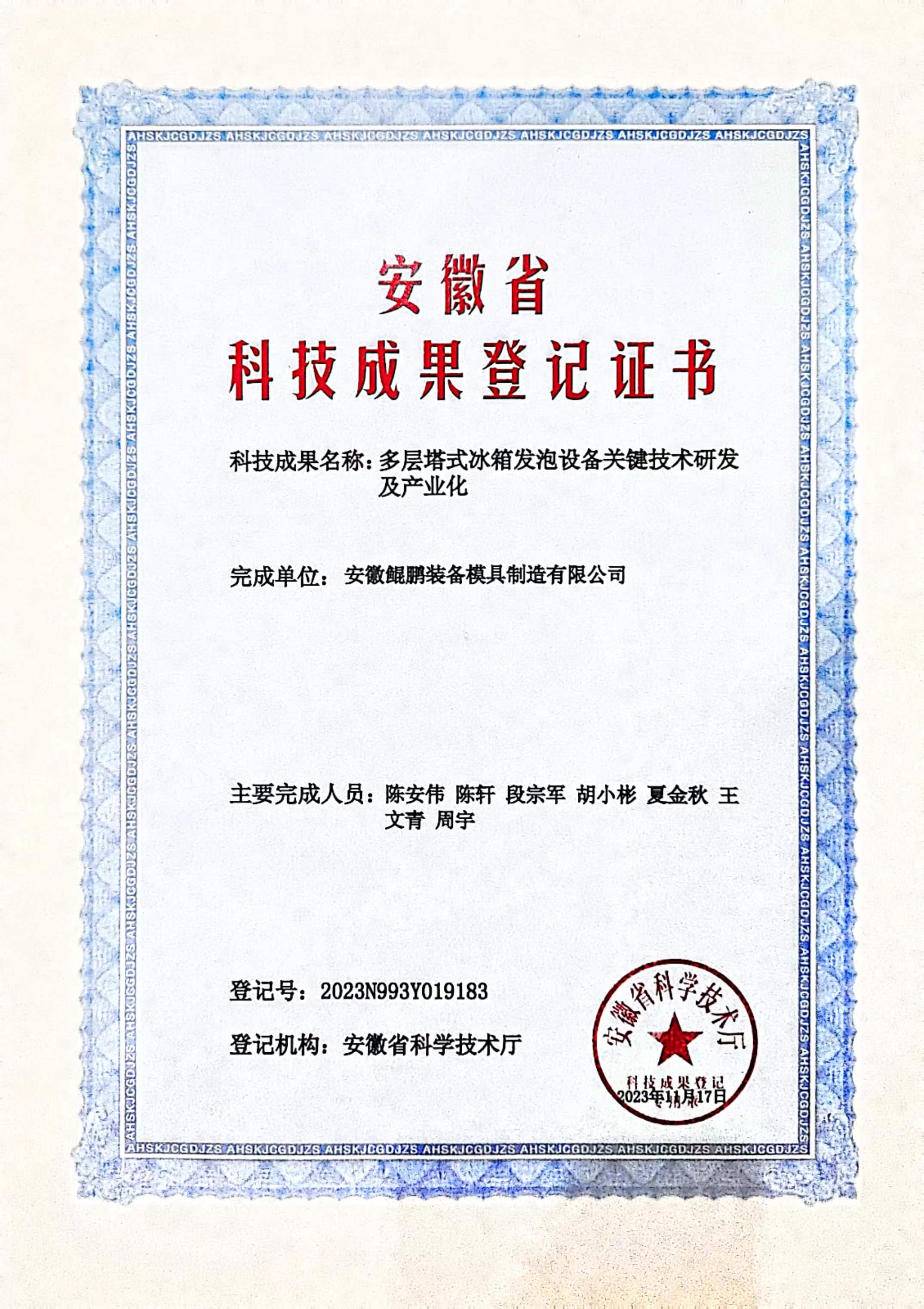 春節開工第一周,繼安徽省專利百強,省級新產品認定雙報喜訊后,公司“多層塔式冰箱發泡設備關鍵技術研發及產業化”、“雙模旋轉汽車內飾成型機關鍵技術研發及產業化”兩項科技成果通過安徽省科技成果認定。堅持以技術創新填補產業鏈空白,堅持在“工業母機”的裝備領域深耕細作,在推動產業現代化“智轉數改”的道路上,鯤鵬將勇往直前,扶搖直上。