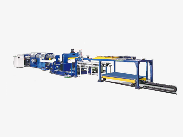 用于冰箱后背板成型根據(jù)要求各專機(jī)可組合完成對(duì)定尺板料的自動(dòng)上料、沖孔切邊、料片翻轉(zhuǎn)、輥軋成型、壓型、兩端90度折彎、下料等工序。