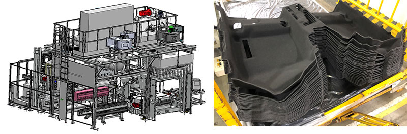 主要由上料部分、加熱部分、模架部分、材料輸送部分、氣動、真空、液壓、水循環及電控系統組成。