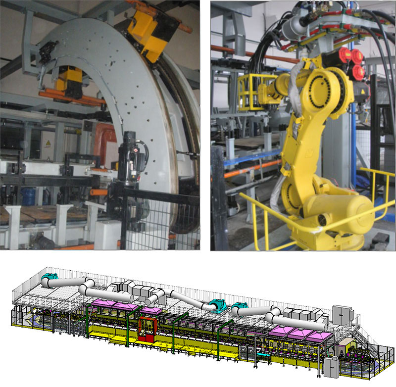 適用于汽車座椅發(fā)泡。廣泛運用于軍民用車輛座椅、頭枕等零部件發(fā)泡生產(chǎn)。主要由驅動裝置、開合模裝置、發(fā)泡臺車、加熱烘爐、排風系統(tǒng)、供氣系統(tǒng)、沖注系統(tǒng)、氣動、液壓及電控系統(tǒng)等組成。