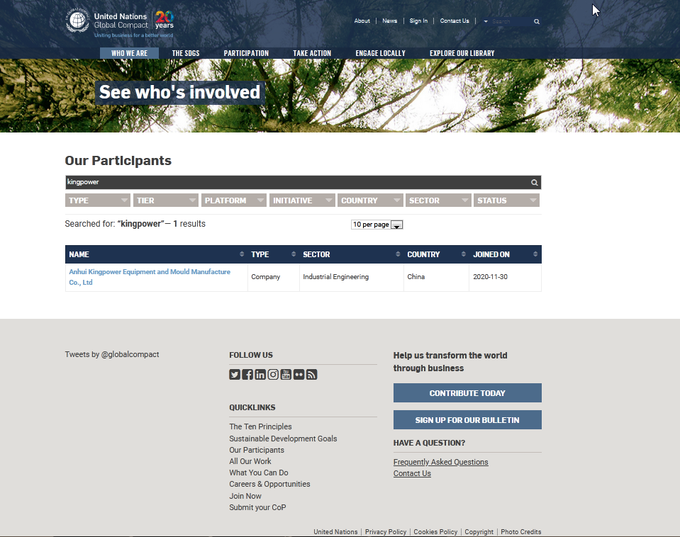 2020年11月30日我司通過自愿申請,加入了聯合國全球契約組織,全面支持聯合國全球契約中關于人權、勞工、環境和反腐敗的十項原則。